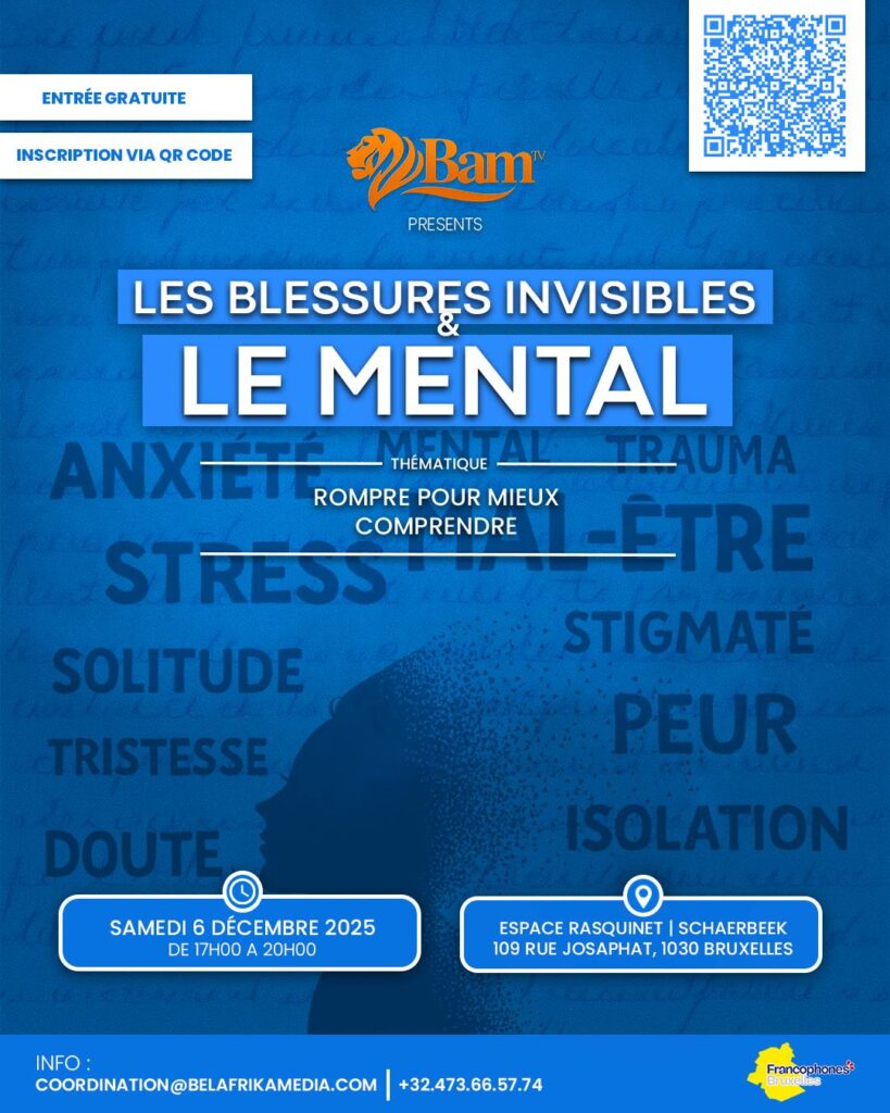 La santé mentale est un sujet universel qui touche chacun d’entre nous, mais qui est souvent entaché de préjugés et de tabous. Bam TV a décidé de prendre les devants en organisant une conférence essentielle sur les blessures intérieures et la perception de la société envers ceux qui en souffrent. Le samedi 6 décembre 2025 à Bruxelles, rejoignez-nous pour un espace de dialogue et de partage dédié à la compréhension des enjeux de la santé mentale.